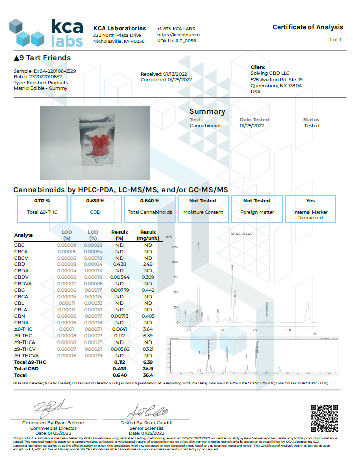 Please note: The COA numbers are for 1/2 of one gummy. A full gummy is double the amount.